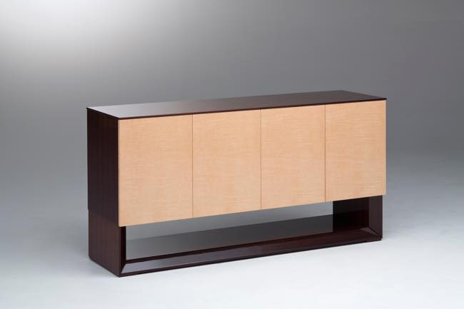 The Curly Series makes use of curly maple grains (crepe grain). It features broader patterns than white sycamore crepe grain. This grain, which has been prized for use on instruments such as guitars, exudes a solid presence. The furniture designs that feature this distinctive grain will look excellent in the dining room.